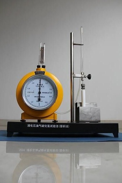 液化石油气中硫化氢含量测定器适用于检测液化石油气硫化氢含量。将浸渍了乙酸铅的粗孔硅胶装入玻璃反应管中,当气体试样通过硅胶层时,硫化氢与乙酸铅反应生成黑色硫化铅,使硅胶层上显出一定长度的染色层,根据染色硅胶体积确定通过反应管的硫化氢量,再根据测得的试样体积,便可计算试样中硫化氢含量。