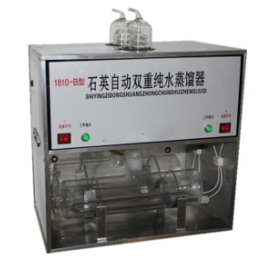 1810-B石英双重纯水蒸馏器是全部采用优质石英玻璃制成。所蒸蒸馏水不与任何金属相接触,经过二次蒸馏所获得的纯水纯度高,石英加热器能起到节能、长寿辐射率高等优点。