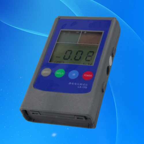 LX-170静电电压测试仪,也叫静电场测试仪是一非接触式手提静电场测试仪。可测范围在+-20KV(工作距离为1英寸,25mm)配置有2个LED灯确保测量时离被测物体保持25mm。外壳为防静电材质,并有接地扣(线),确保测量结果可靠真实。